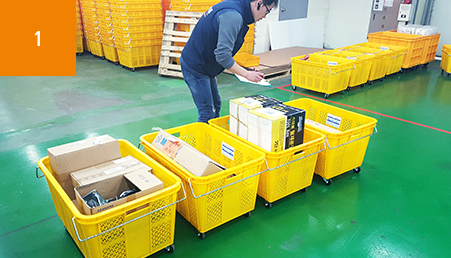대물 하차작업(1인당 1개 혹은 2개 바구니 이동)